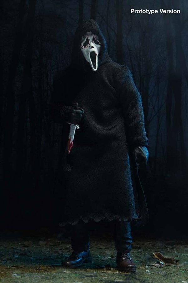 NECA is proud to announce one of the greatest slashers to come out of the 90s is joining the Ultimate line! Ghostface stands approximately 7" tall, is dressed in an all fabric robe for full pose ability, and comes with a disturbing amount of sharp objects including 3 knives and a scythe.