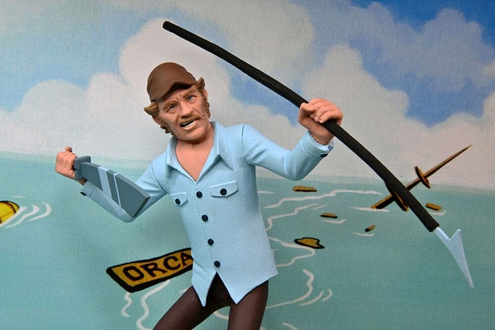 Joining the adorably creepy Toony Terrors line are Quint and shark from Jaws! This 2-pack will include the pair in 6-inch scale, with machete and harpoon spear accessories for Quint and an extra fin for the shark.