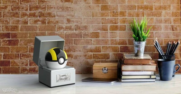 This premium quality, highly accurate Ultra Ball replica is made with an engineered metal shell, has a deeply colored surface that is sensitive to touch and proximity and features a brightly illuminated button and lift-to-display illuminated presentation case. This Ultra Ball promises to be a beautiful addition to any Pokémon collection!