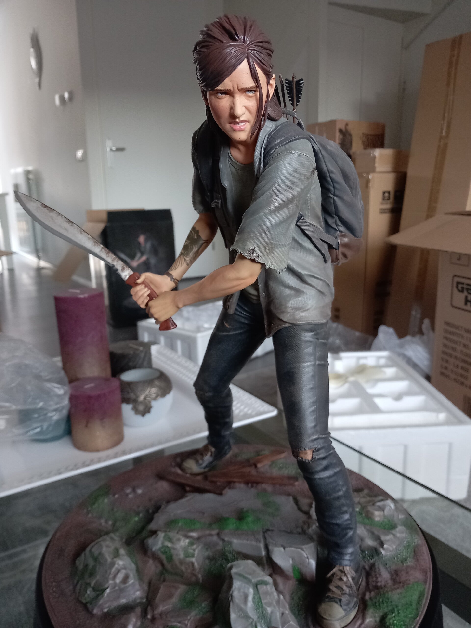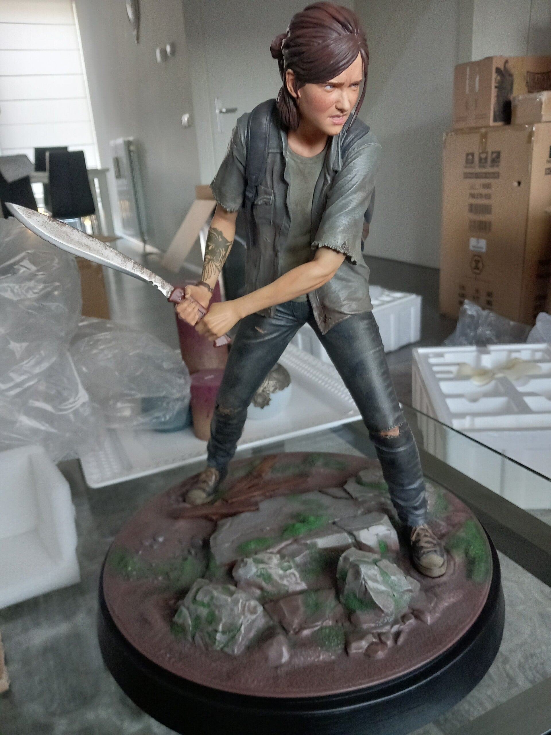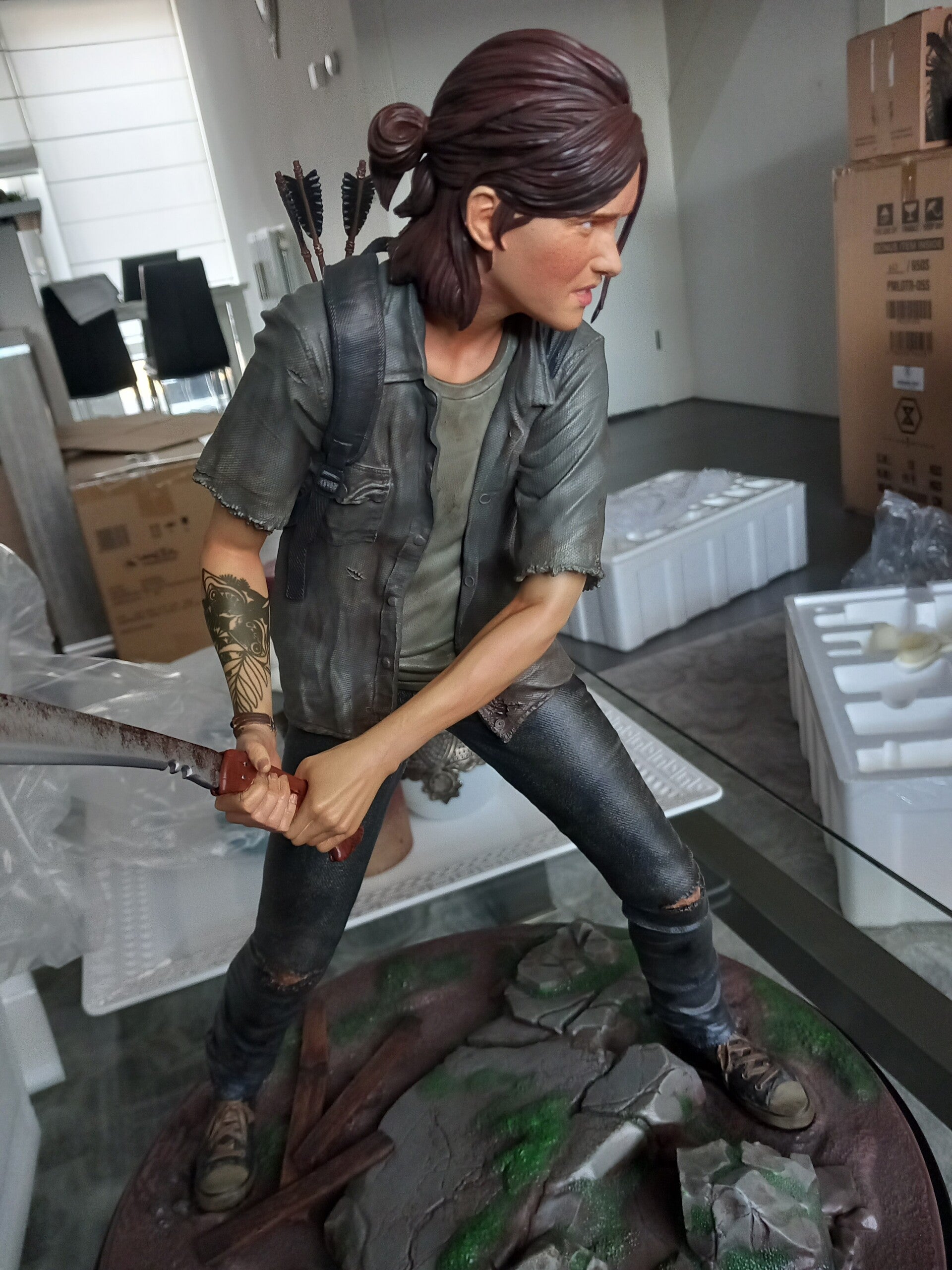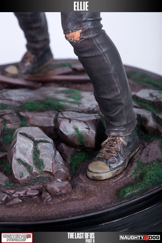 In-game files were used in creating Ellie and she stands approximately 16" tall (i.e. 1:4 scale) from the bottom of the moss covered stone and dirt base to the top of her head. The Ellie statue is made using polystone resin and is skilfully hand-crafted and painted by artisans*.