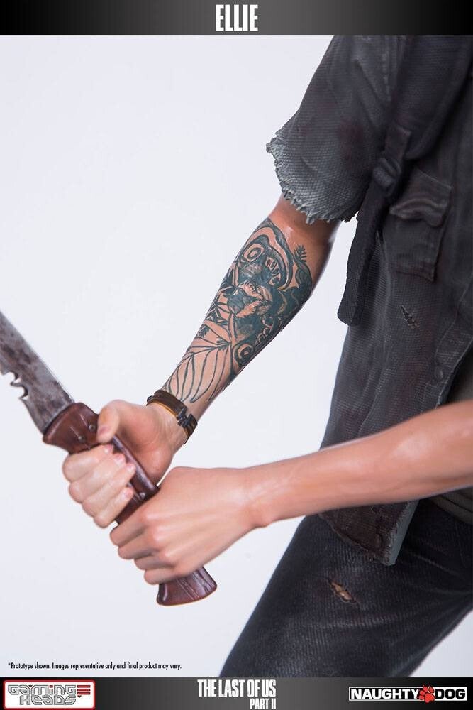 This Ellie statue shows an angry Ellie with both hands on the machete for extra power ready to strike. Her clothes are ripped and worn but she has revenge on her mind.